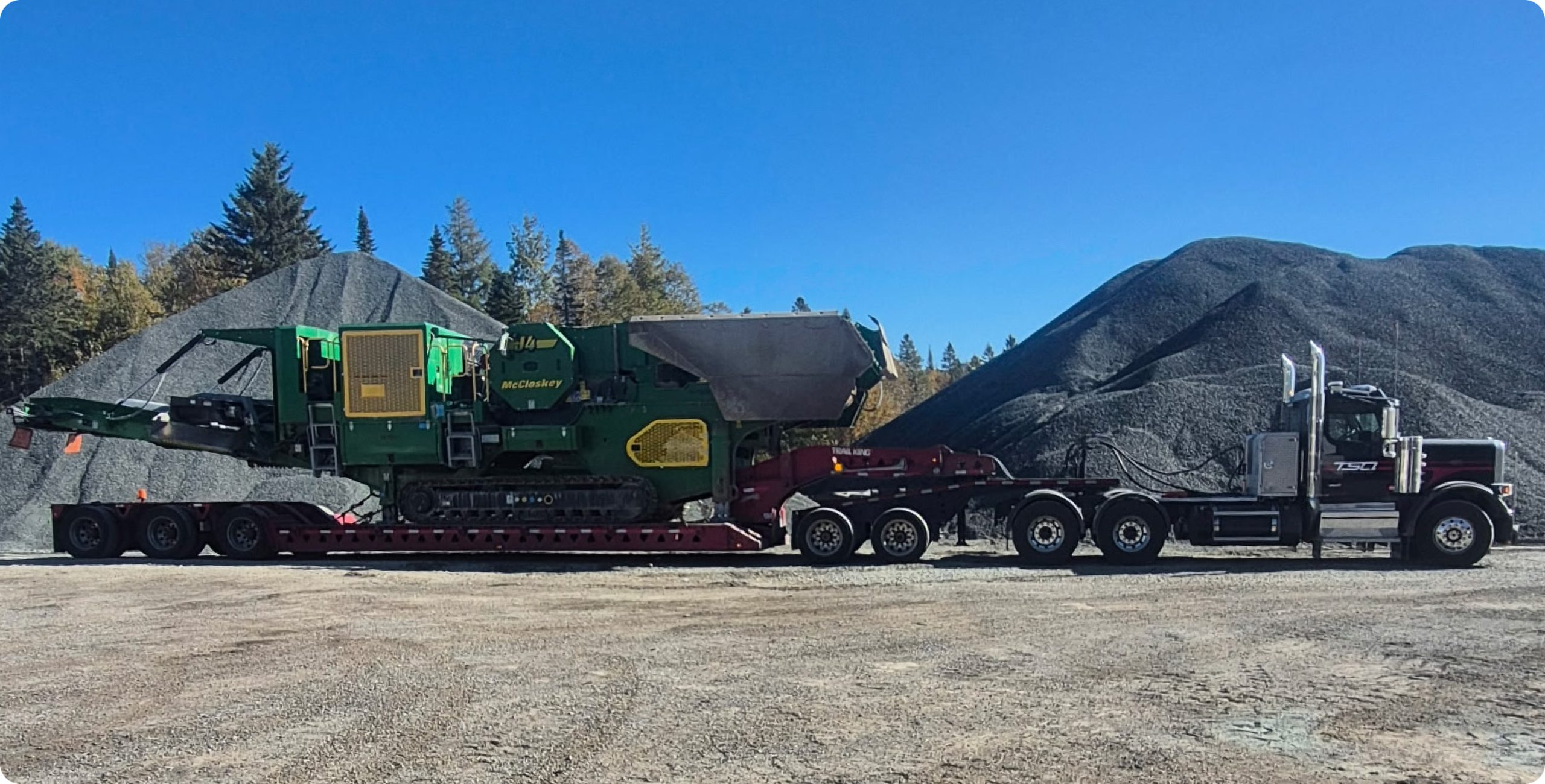 Notre flotte diversifiée et bien entretenue nous permet de transporter tout type de machinerie lourde et de charges surdimensionnées. Remorques surbaissées, plateformes extensibles, équipements spécialisés: on a ce qu’il faut pour faire le travail à la hauteur de vos attentes.